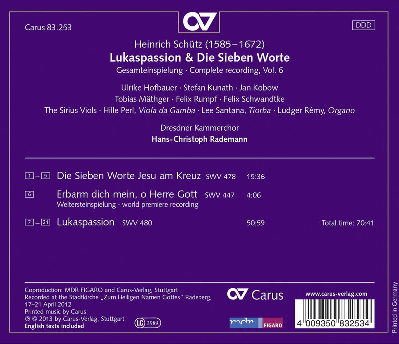 CarusSchütz: Complete Recordings, Vol. 6 (Lukaspassion & Die Sieb