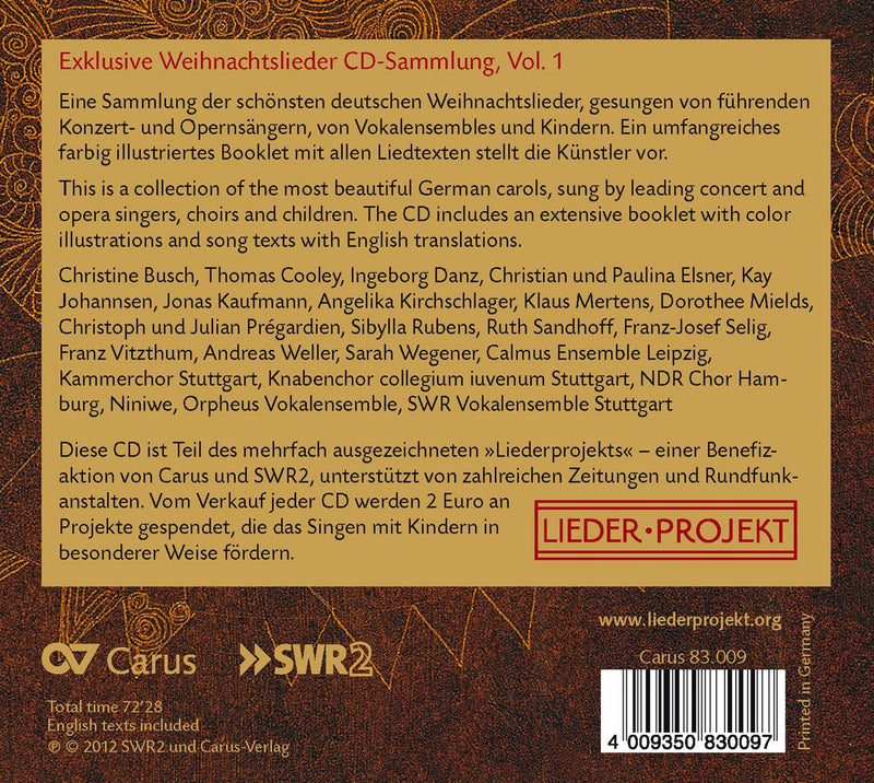 Exclusive Collection of Christmas Carols Many renowned German-speaking singers - amongst others, Jonas Kaufmann, Angelika Kirchschlager and Christoph Pregardien - and ensembles...