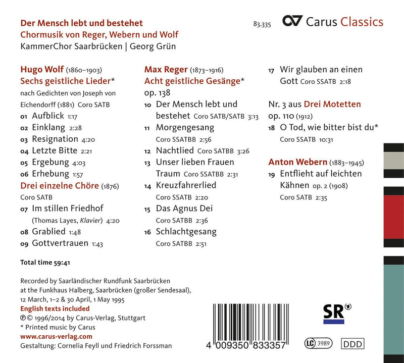 CarusDer Mensch lebt und bestehetThe Carus Classics series feature outstanding CD productions from Carus’ past library of recordings. Reger’s “Acht geistlichen Gesänge” (Eight Sacred Songs) are...