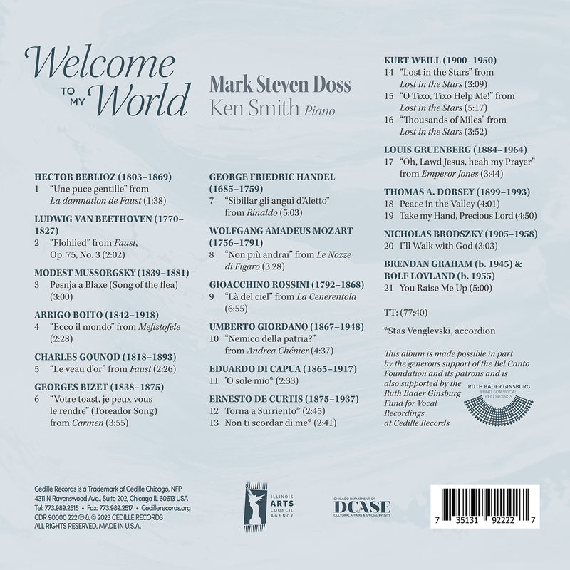 On SaleCedilleWelcome To My World - Songs & Arias for Bass-Baritone / Doss, Smith