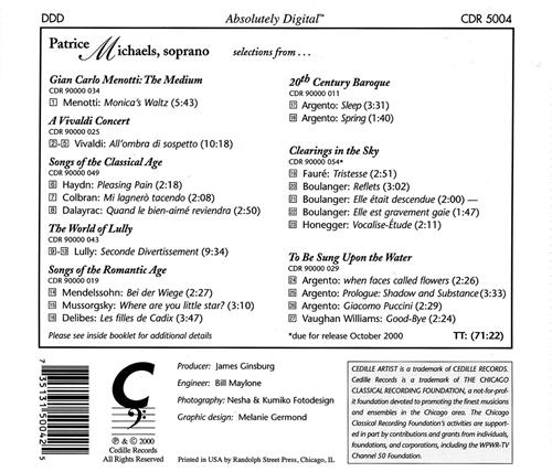 Acclaimed lyric soprano Patrice Michaels, “a formidable interpretative talent” (The New Yorker), conceived and headlines this inventive, wide-ranging two-disc, 26 song project...