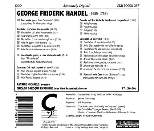 HANDEL: Un'alma innamorata / Chi rapi la pace al core / La L