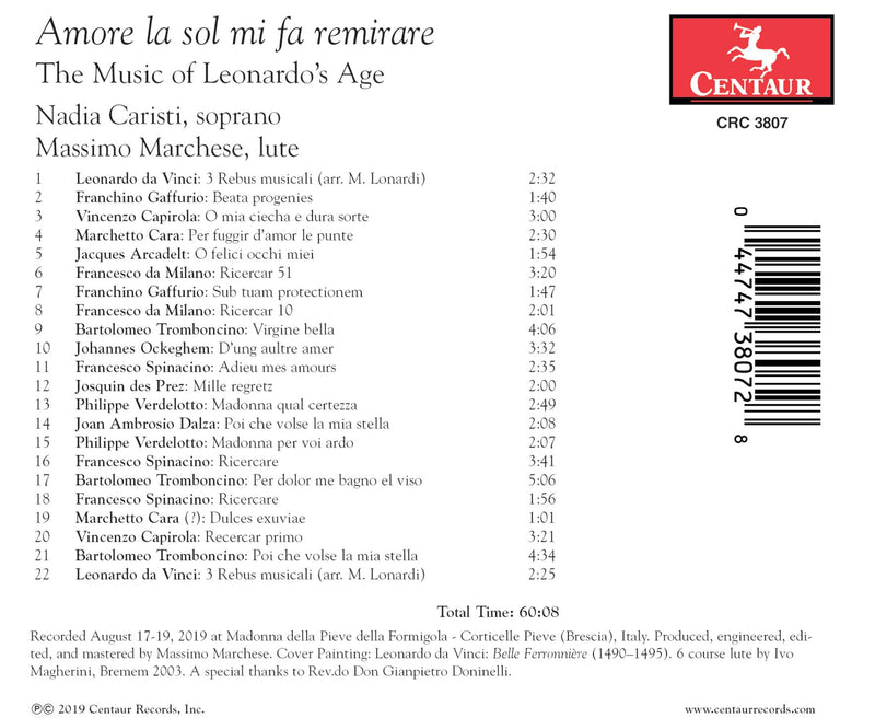 Centaur RecordsAmore la sol mi fa remirare: The Music of Leonardo's Age / Caristi, Marchese