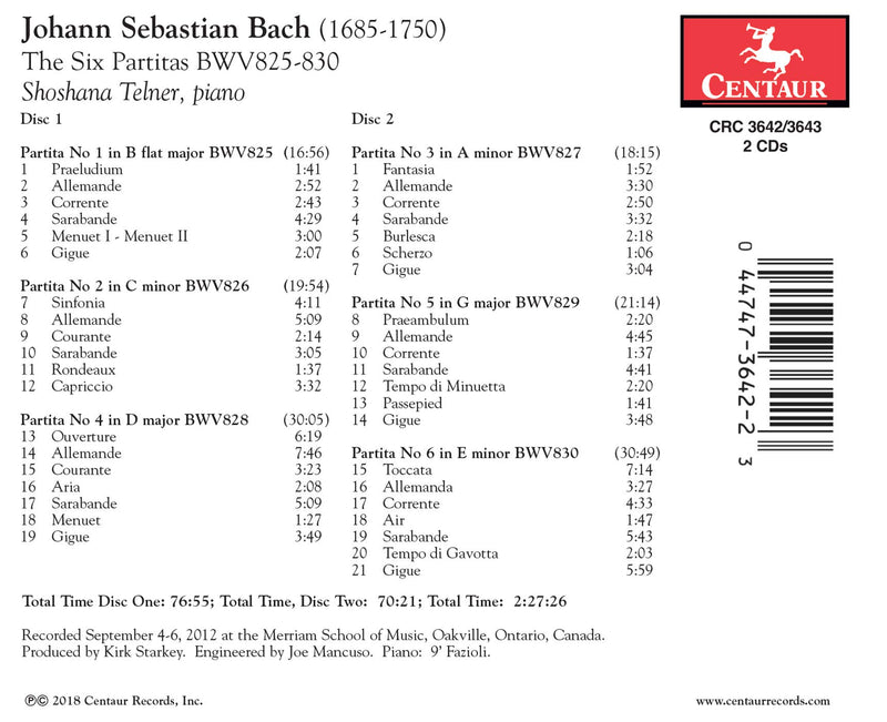 Centaur RecordsBach: 6 Partitas, BWV 825-830 / Telner