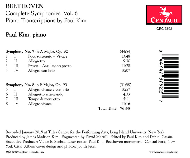 Centaur RecordsBeethoven: Complete Symphonies, Vol. 6 / Paul Kim