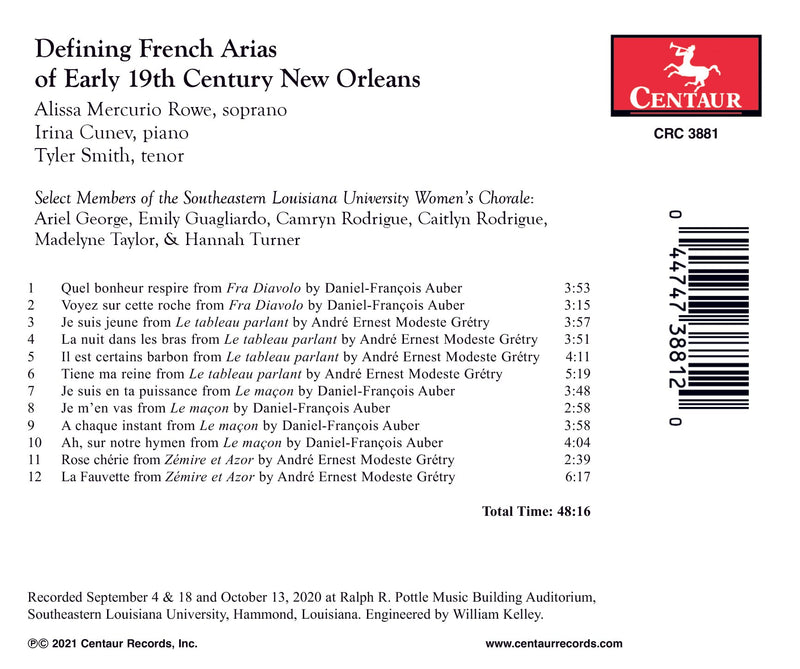 On SaleCentaur RecordsAuber and Grétry: Arias of 19th Century New Orleans / Rowe