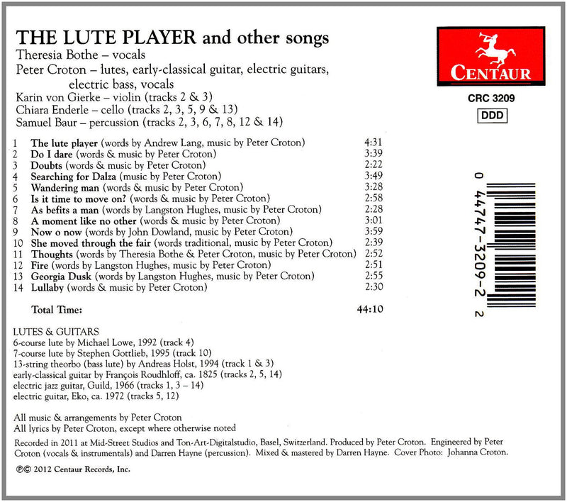 This release presents an eclectic collection of works by Peter Croton for lute, voice, and additional instruments.