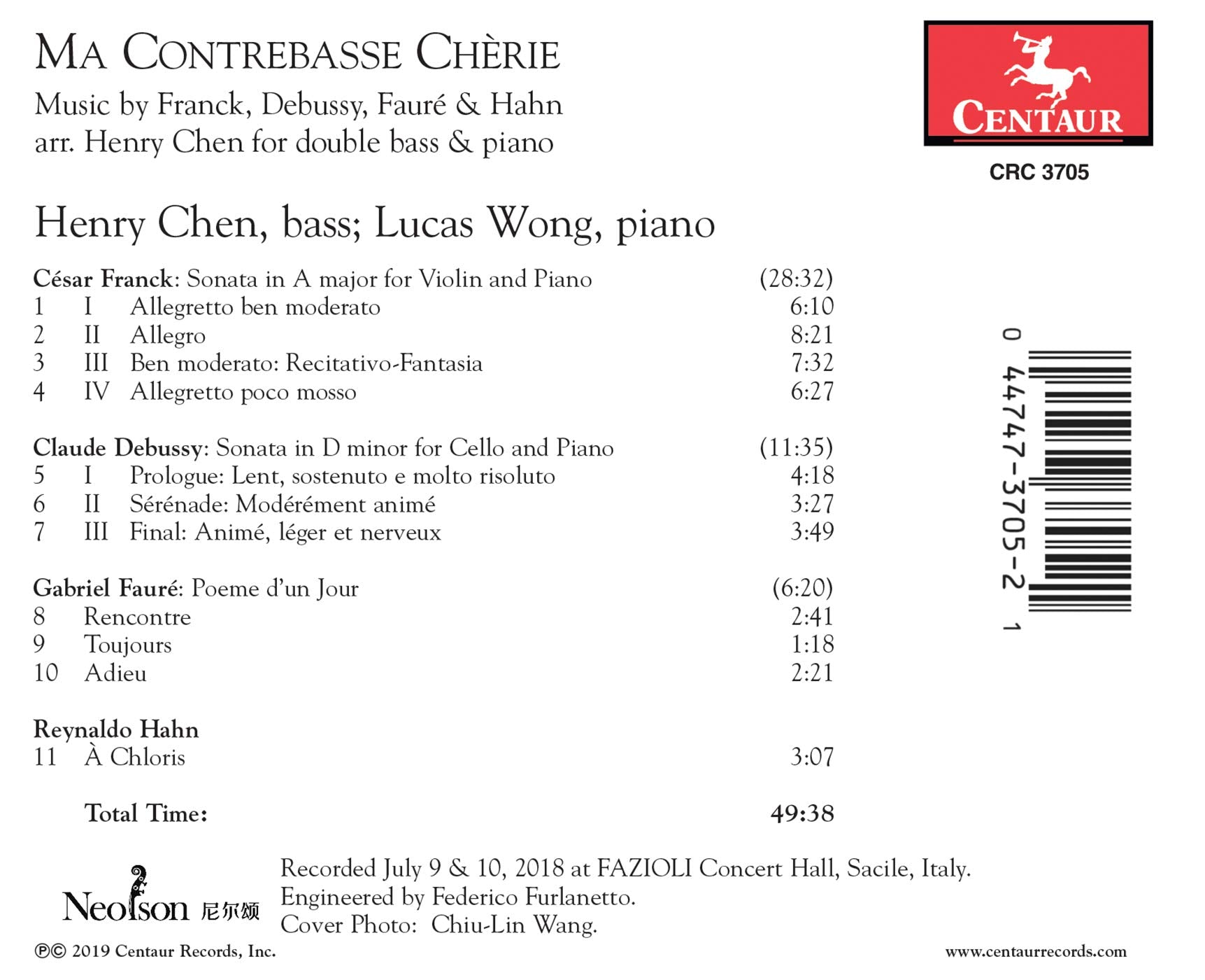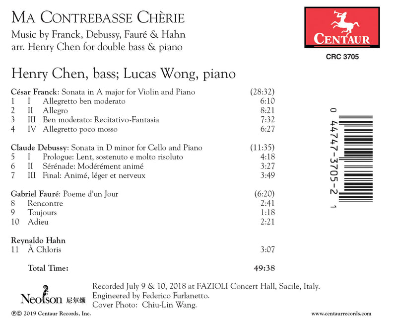 This is a program of great French works, in arrangements for double bass and piano by Henry Chen. Henry Chen and Lucas...