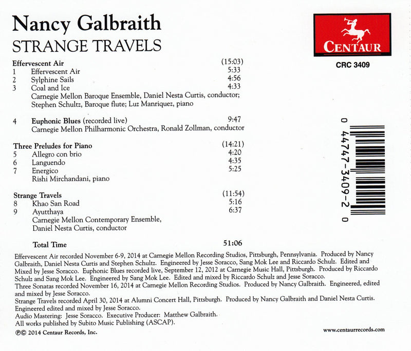Strange Travels, the second Centaur release to feature composer Nancy Galbraith, include works for varying ensembles and solo piano. Ms. Galbraith's instrumental...