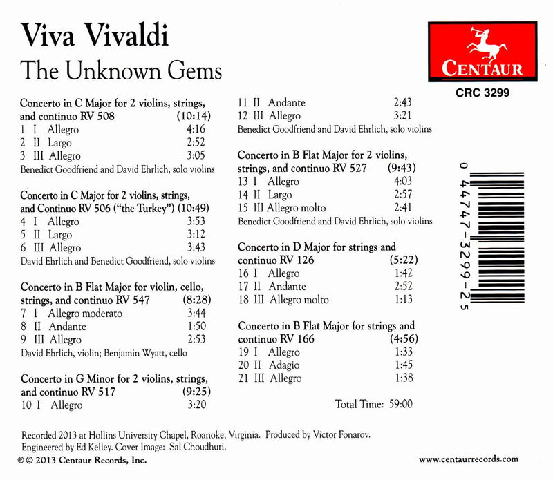 This album features seldom heard concertos by Antonio Vivaldi. + Viva Vivaldi, an American ensemble that specializes in performances of Vivaldi’s music,...