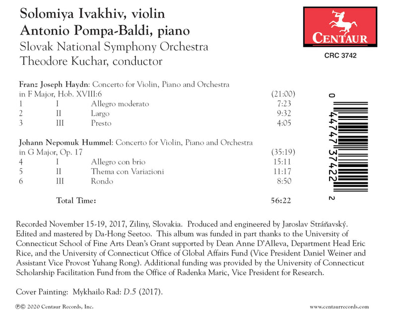 Centaur RecordsHaydn + Hummel: Concertos for Violin, Piano & Orchestra / Pompa-Baldi, Ivakhiv, Kuchar, Slovak National Symphony