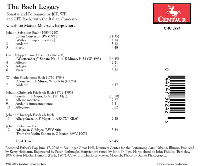 Centaur RecordsThe Bach Legacy - Sonatas and Polonaises