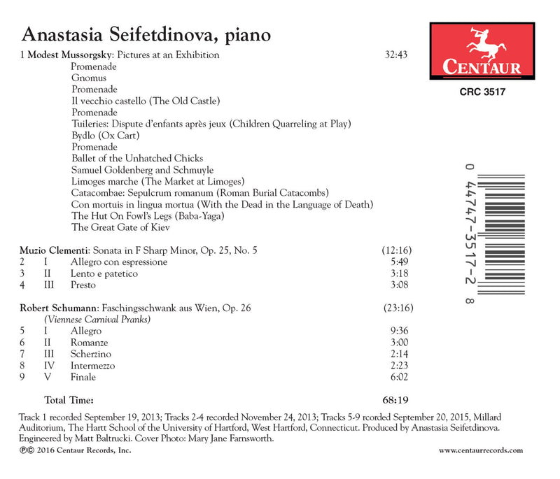 Centaur RecordsMussorgsky, Clementi & Schumann: Piano Works