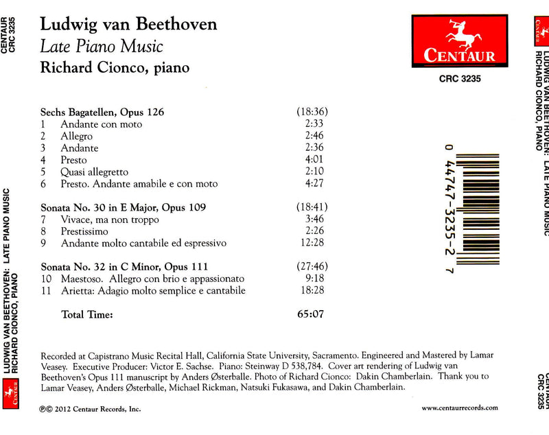 Centaur RecordsBeethoven: Late Piano Music