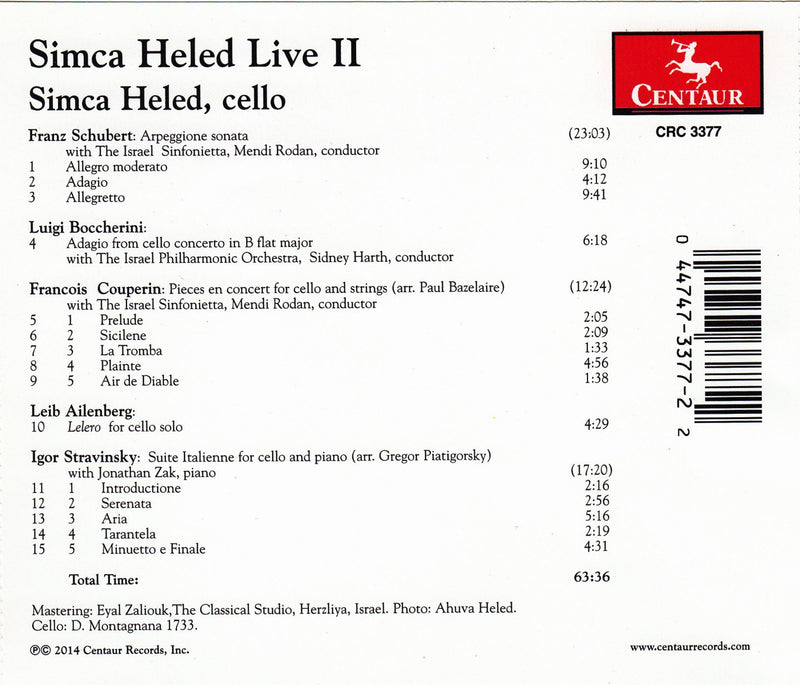 Simca Heled, Live II, finds the acclaimed veteran Israeli cellist performing against three differing backgrounds five works of music originally for, or...