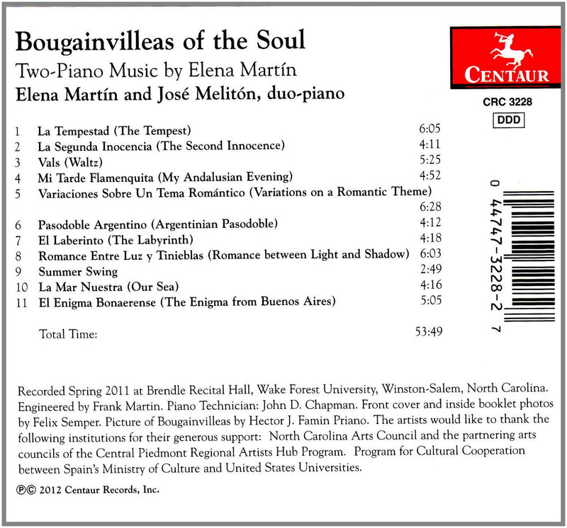 Centaur RecordsBougainvilleas of the Soul - Two-piano music by Elena Martin