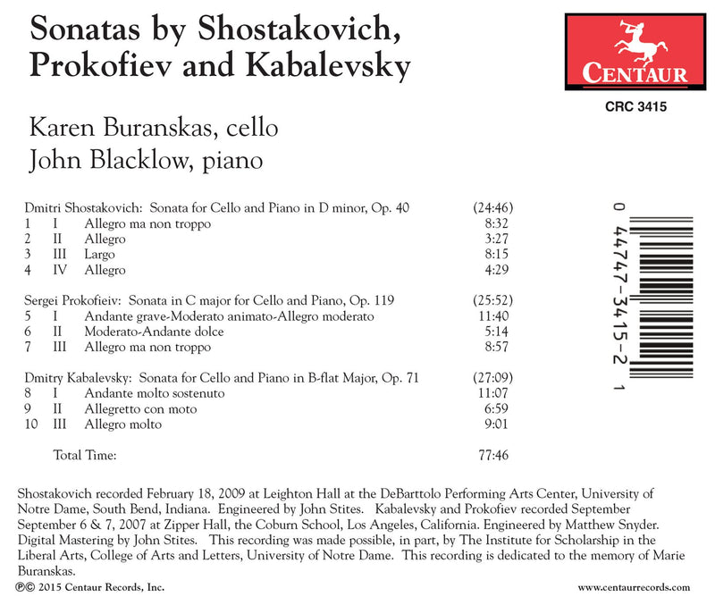 Centaur RecordsShostakovich, Prokofiev & Kabalevsky: Cello Sonatas