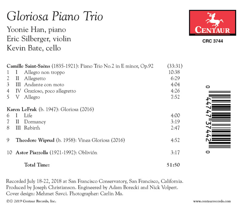 The Gloriosa Piano Trio is one of the finest piano trios based in the U.S. today. This program includes the wonderful Saint-Saens...