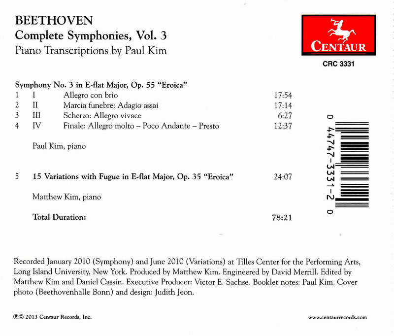 Centaur RecordsBeethoven: Complete Symphonies, Vol. 3 (Arr. for Piano)