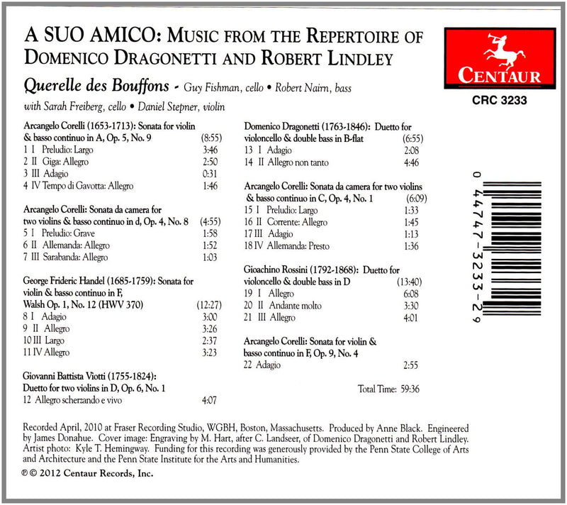 Centaur RecordsA Suo Amico: Music from the repertoire of Domenico Dragonett