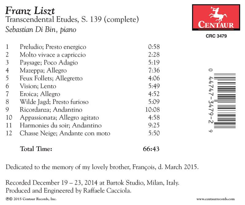 Centaur RecordsLiszt: Transcendental Etudes, S. 139