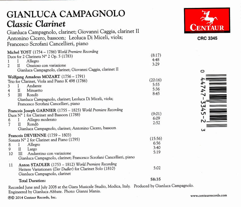 Clarinetist Gianluca Campagnolo has to his credit over 1000 concert performances (in Sicily, in Italy and abroad) as a soloist and in...