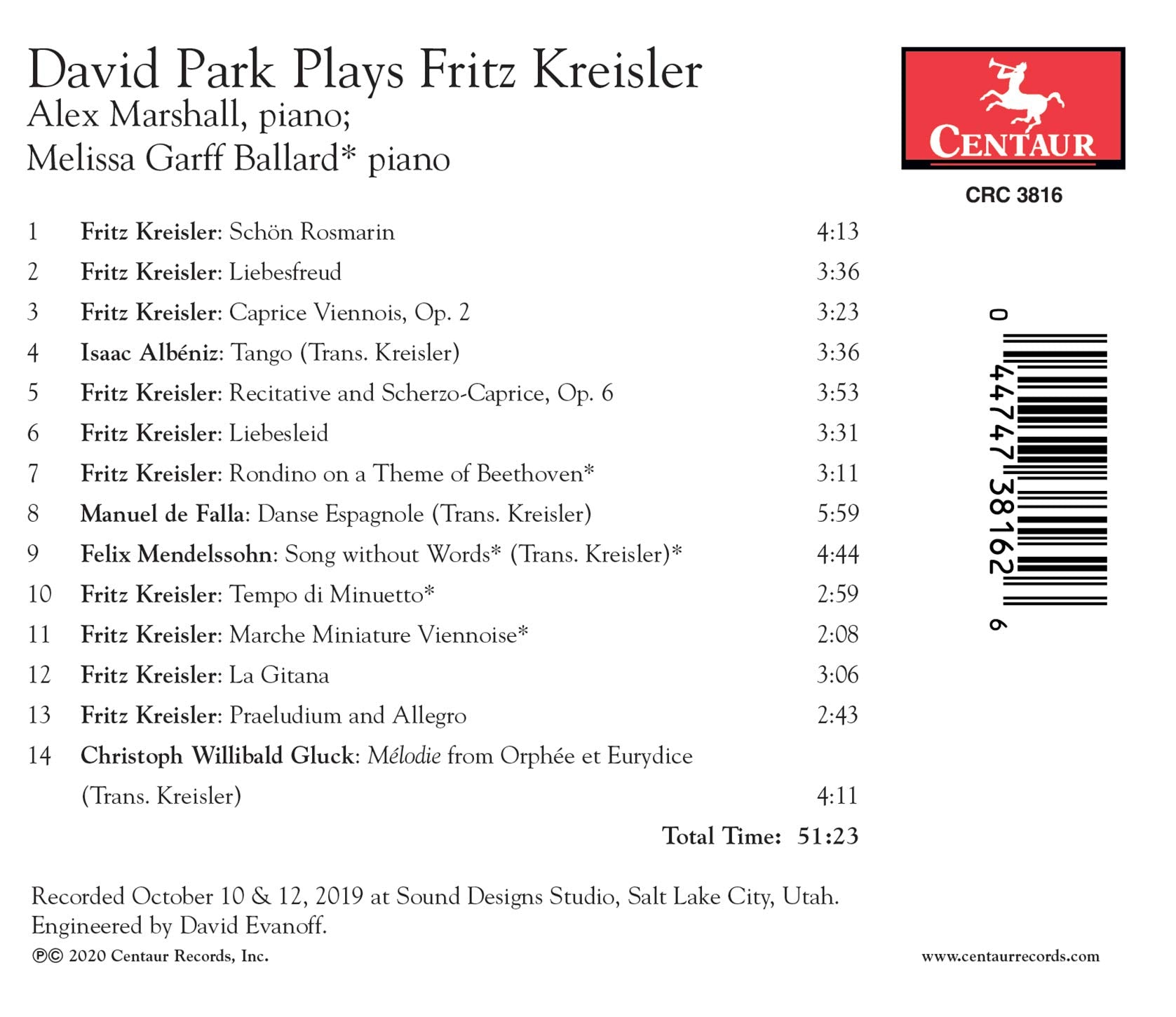 Centaur RecordsDavid Park Plays Fritz Kreisle