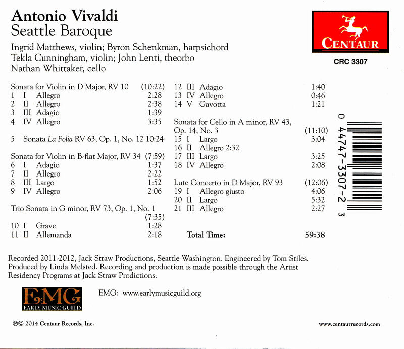 Seattle Baroque, founded in 1994 by violinist Ingrid Matthews and harpsichordist Byron Schenkman, quickly established itself as one of the most vibrant...