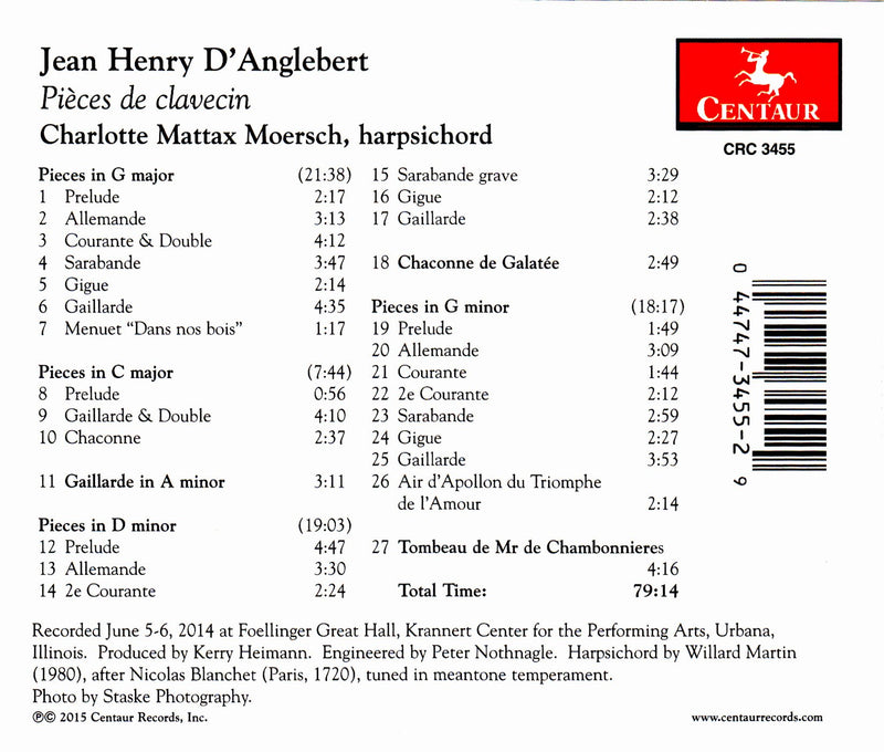 Centaur RecordsD'Anglebert: Pièces de clavecin