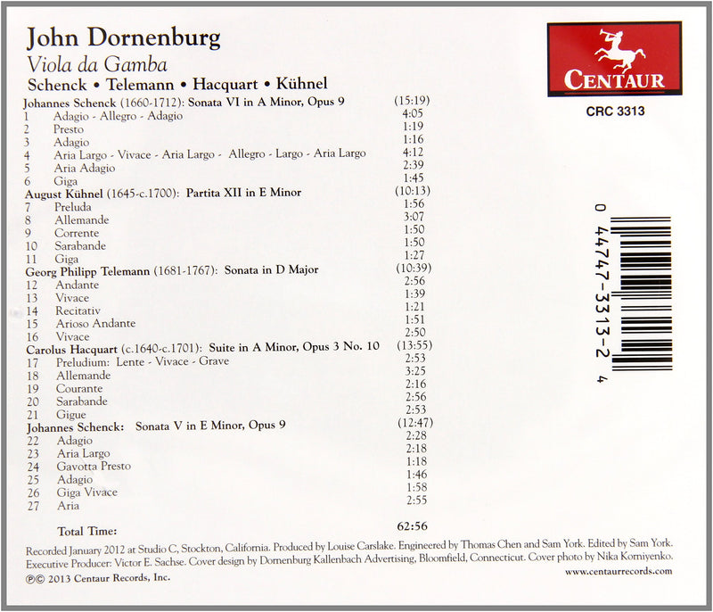 This album features some of finest works for solo Viola da Gamba of the 17th-18th centuries, including Georg Philipp Telemann's Suite in...