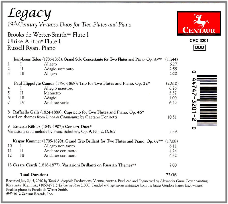Centaur RecordsLegacy - 19th Century Virtuoso Duos for Two Flutes and Piano