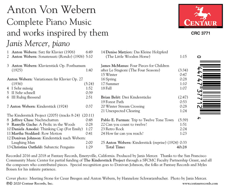 Centaur RecordsWebern: Complete Piano Music & Works Inspired by Them / Mercer
