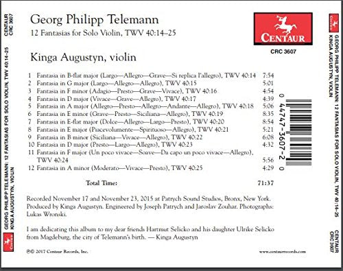 Centaur RecordsTelemann: 12 Fantasias for Solo Violin, TWV 40:14-25
