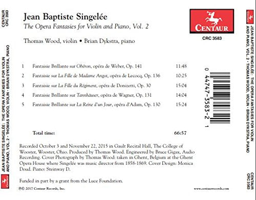 This is Centaur's second volume in The Opera Fantasies for Violin and Piano by Jean Baptiste Singelee, featuring Thomas wood and Bryan...
