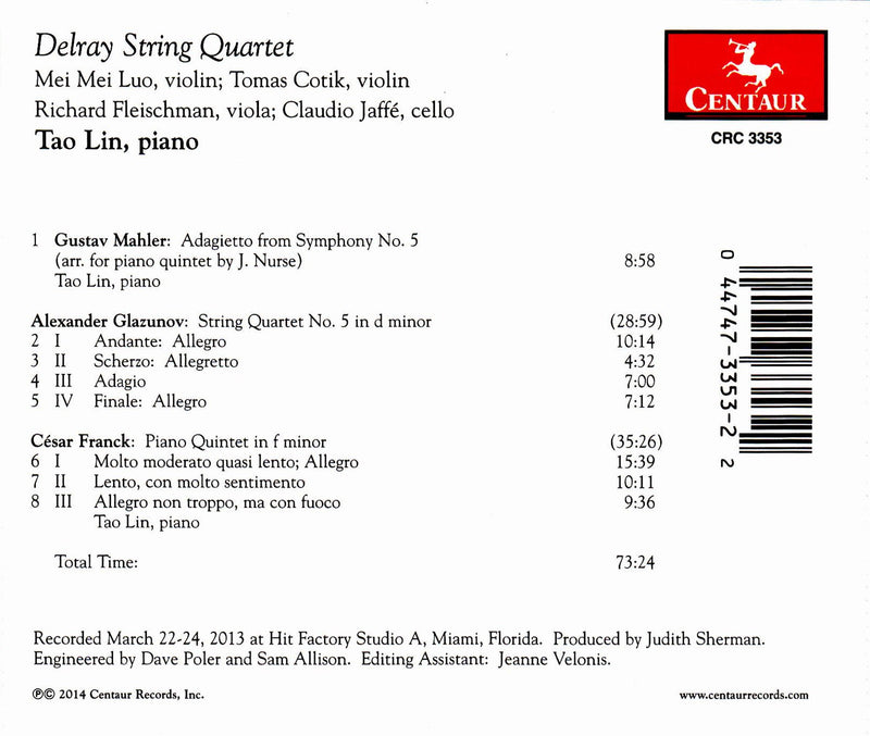 Centaur RecordsMahler, Glazunov & Franck: Works for Piano Quintet & String