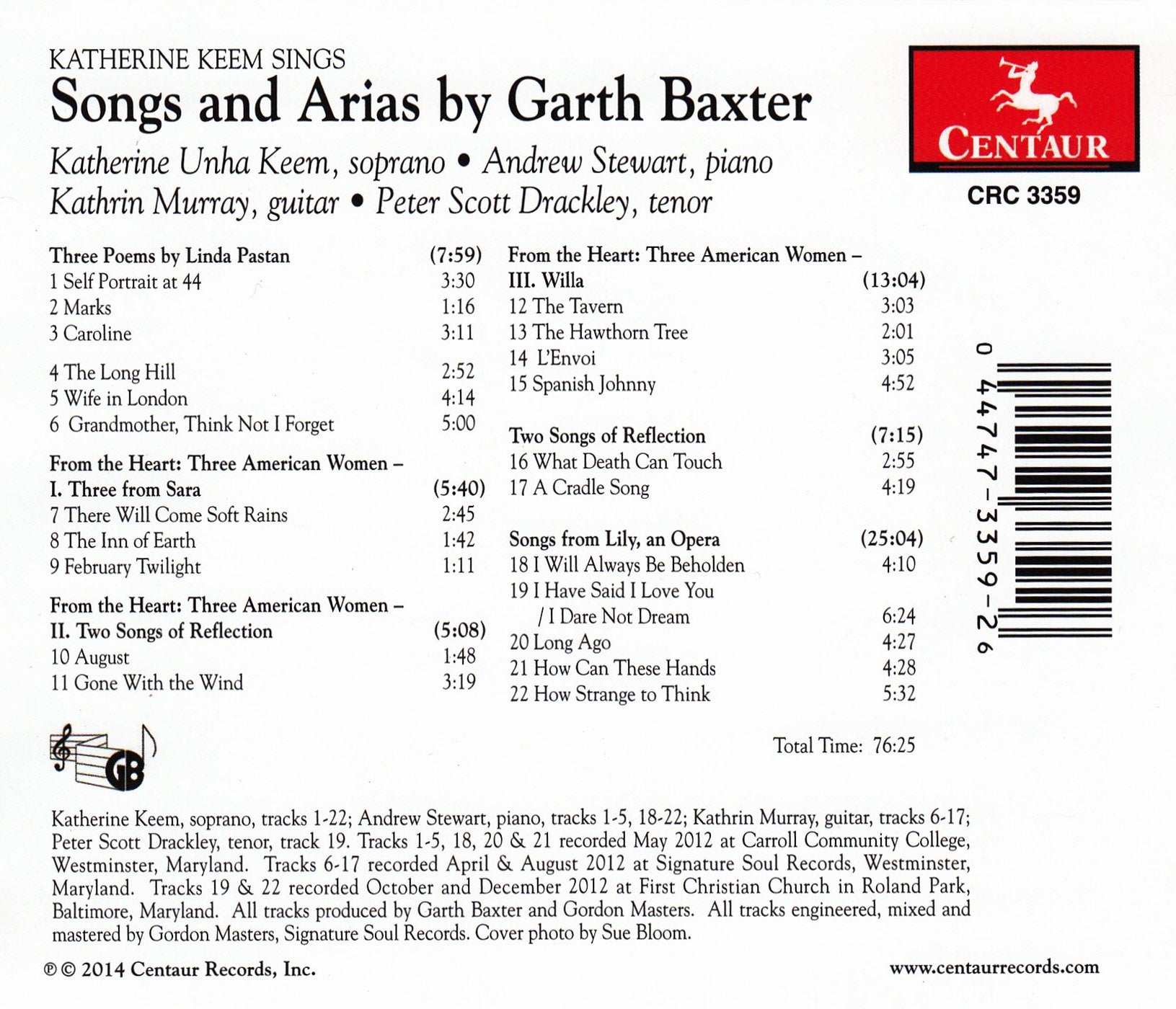 Centaur RecordsSongs & Arias by Garth Baxter