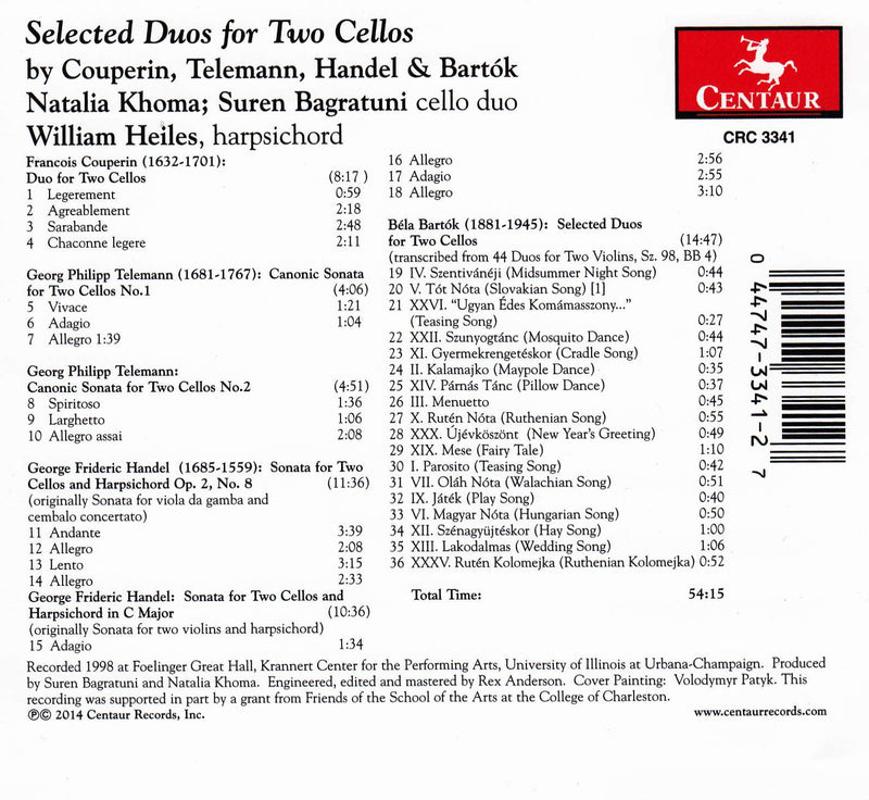 Ukrainian cellist Natalia Khoma and Russian cellist Suren Bagratuni are the featured performers on these 1998 recordings of works for Cello Duo...