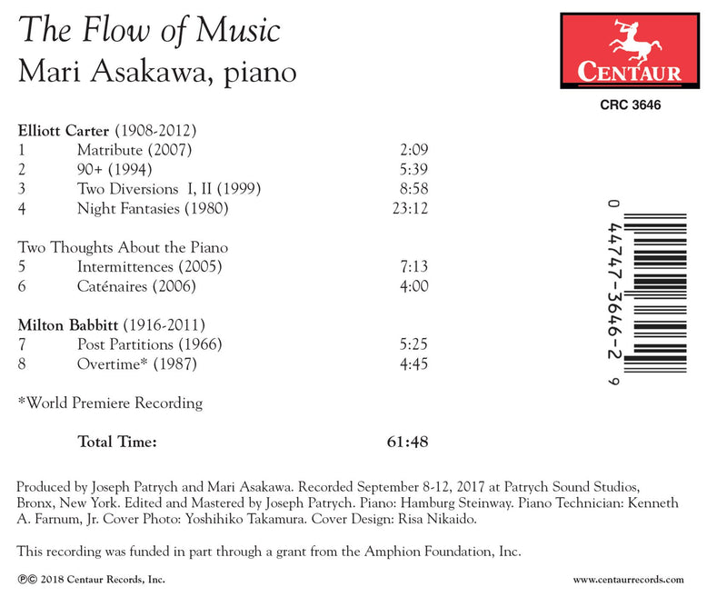 Centaur RecordsThe Flow of Music: Piano Works of Carter & Babbitt / Asakawa