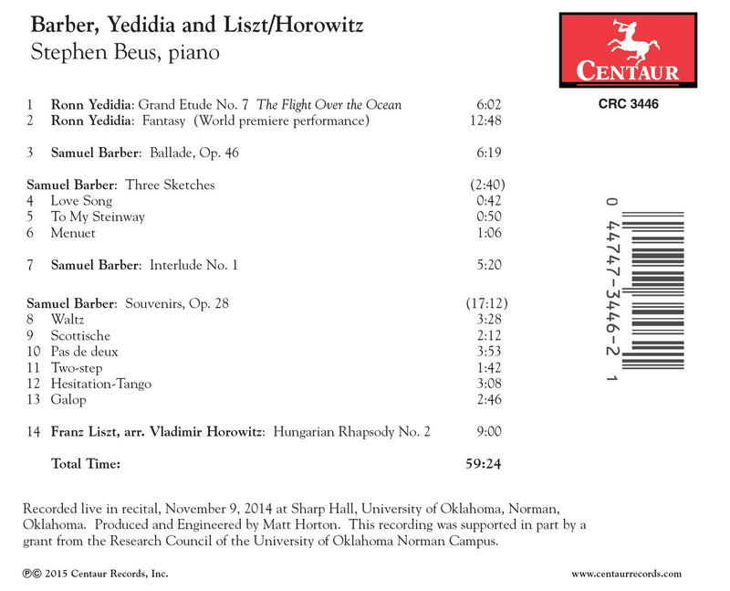 Barber, Yedidia & Liszt: Piano Works / Beus