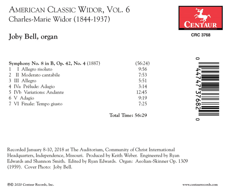 Centaur RecordsAmerican Classic Widor, Vol. 6 / Joby Bell