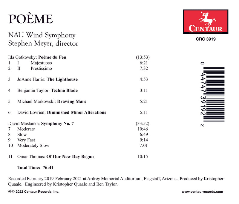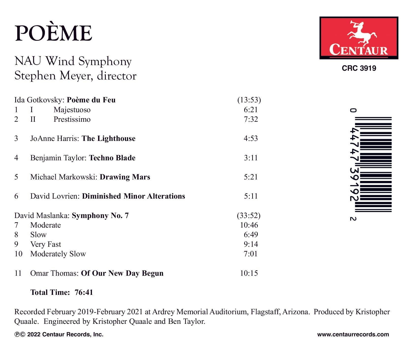 Centaur RecordsGotkovsky, Harris, Taylor: Poeme / Meyer, Northern Arizona University Wind Symphony