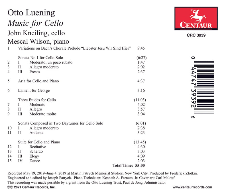 Centaur RecordsLuening: Music for Cello / Kneiling, Wilson