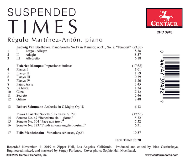 On SaleCentaur RecordsBeethoven, Liszt, Mompou et al.: Suspended Times / Martínez-Antón