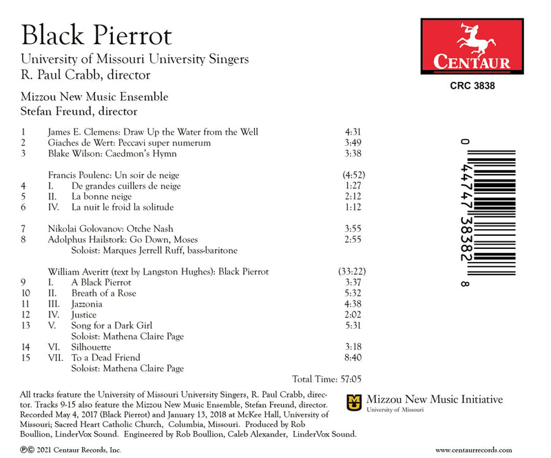 On SaleCentaur RecordsBlack Pierrot / Crabb, Freund, University of Missouri University Singers, Mizzou New Music Ensemble