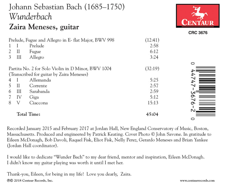 This release goes to show that Bach is beautiful on any instrument. Zaira Meneses plays Bach on guitar with unusual sensitivity and...