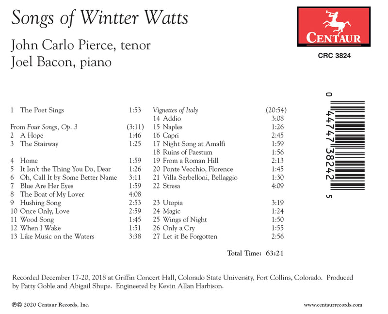 Centaur RecordsSongs Of Wintter Watts / John Carlo Pierce, Joel Bacon