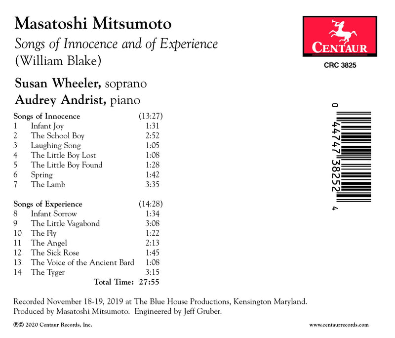 Centaur RecordsMasatoshi Mitsumoto: Songs Of Innocence And Of Experience / Susan Wheeler, Audrey Andrist