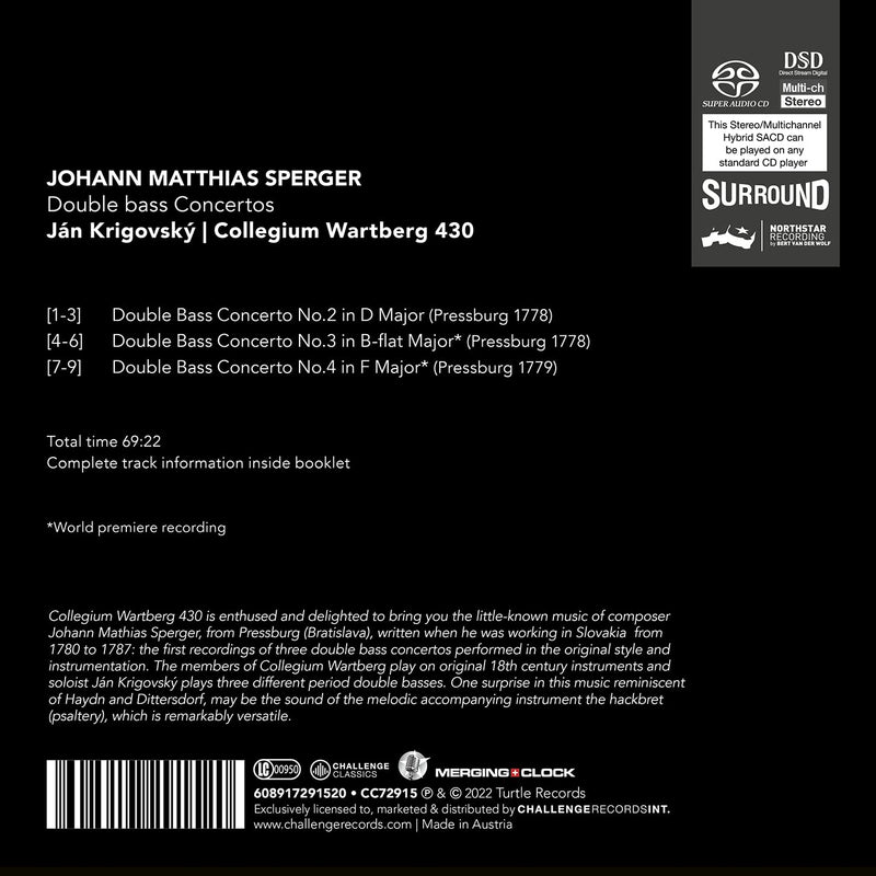 Challenge ClassicsSperger: Double Bass Concertos / Krigovský, Collegium Wartberg 430