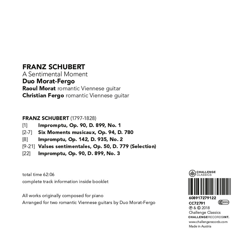 Guitar Duo Morat-Fergo writes: "We had always felt the guitar unconsciously lingering in Schubert's musical language. That, combined with our love for...