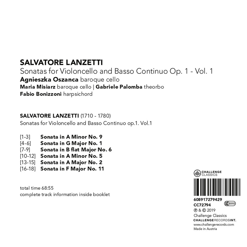 The protagonist of this recording, Salvatore Lanzetti, an Italian cellist and composer, was born in Naples around 1710. He studied cello and...